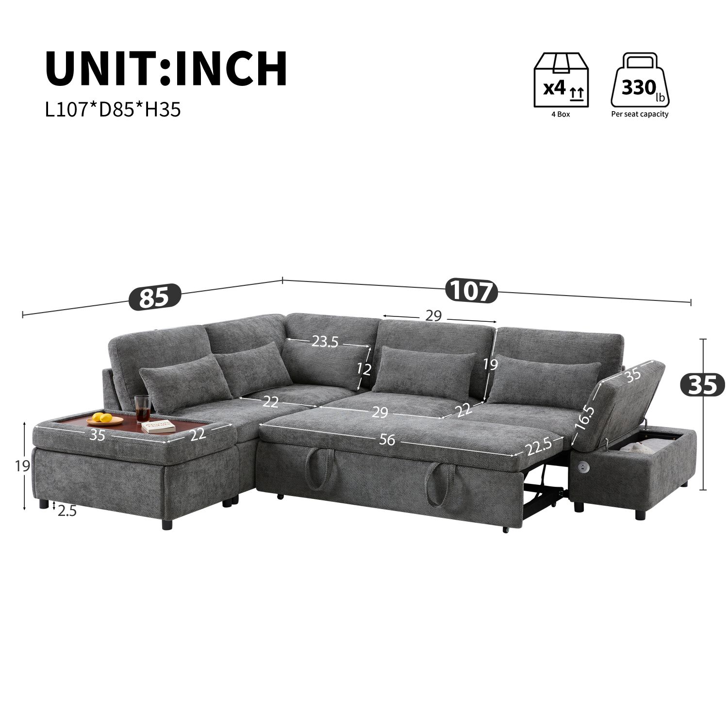 Modular Sectional Pull-out Sofa Bed: The modular design is highly flexible, allows for easy customization, so you can rearrange the pieces to fit your space or change the layout as desired. It can be used as a sofa and can also be stretched out to become a bed, which is suitable for small-sized apartments or for temporary resting needs.