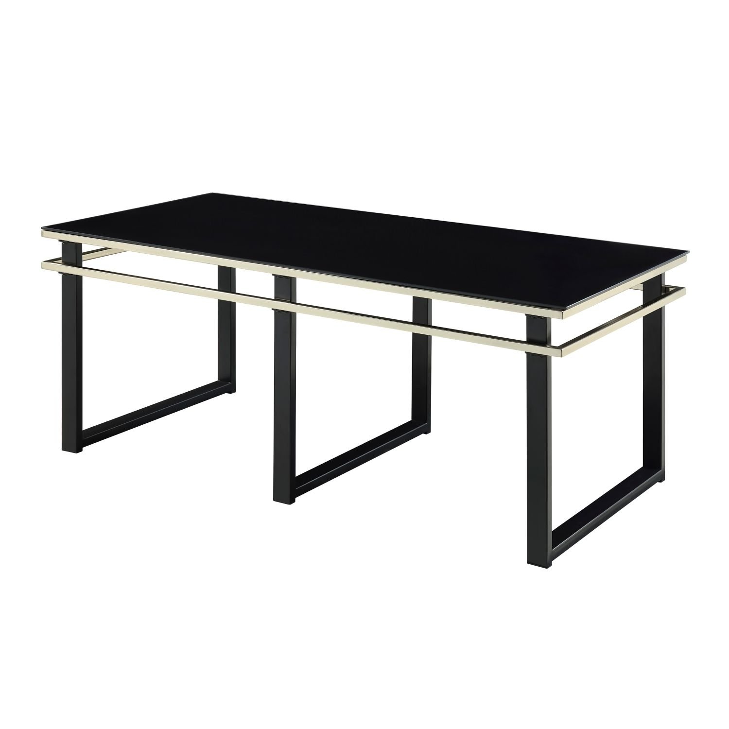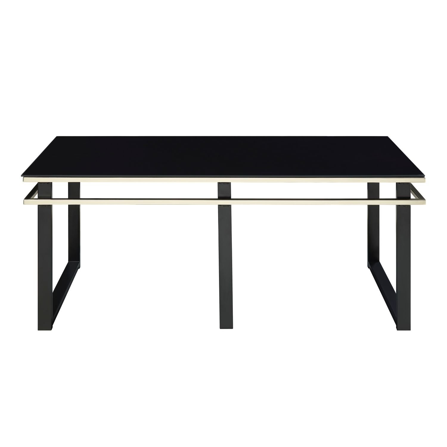 The convenient pairing of the Zamir Collection's cocktail and two end tables provides an easy addition to your home's living room. The elegant contrast of the black tempered glass tabletops, gold-hued banding, and metal legs creates a modern look for your home's living room. The rectangular shape of the cocktail table's top and the square top of the two end tables presents a classic profile, and ample tabletop display space.PRODUCT DIMENSIONS: Cocktail table: 47" x 23" x 18.5"HEnd Table: 22.5" x 19.5" x 24"HListing Includes: 3-Piece Occasional Set (1 Cocktail Table and 2 End-Tables) Only.Simple Assembly Require.