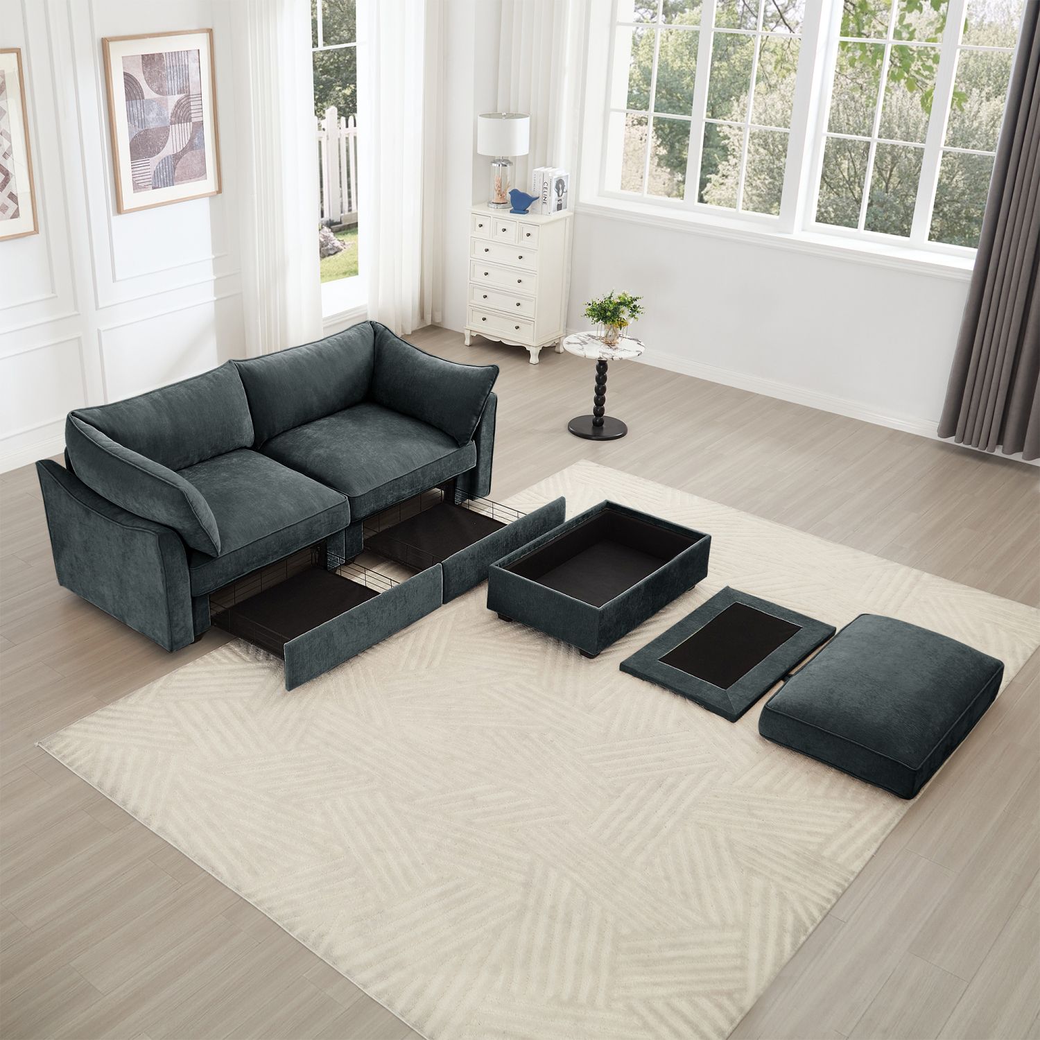 Superior Storage Functionality - Both the footrest and seat are equipped with hidden storage spaces. Each seat has storage drawer, while the pull-out design under the seat allows easy access to frequently used objects, effortlessly solving living room storage challenges.