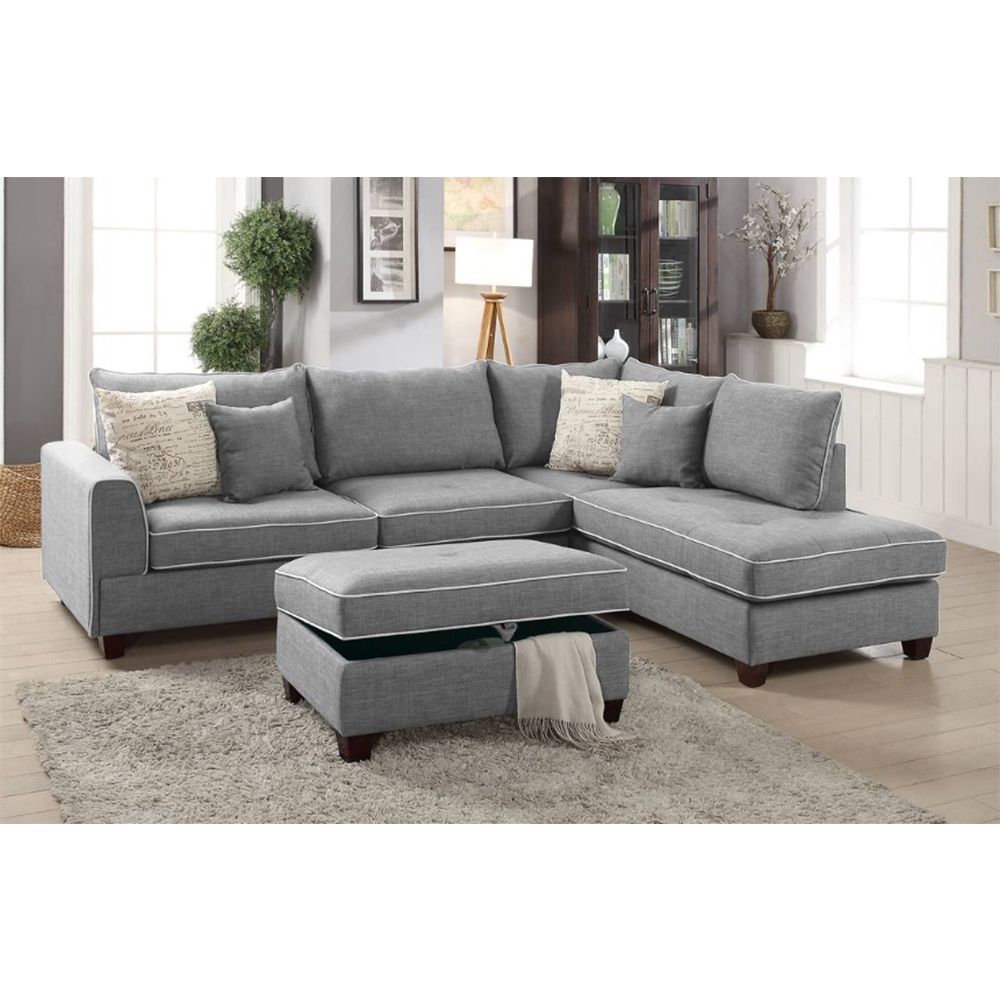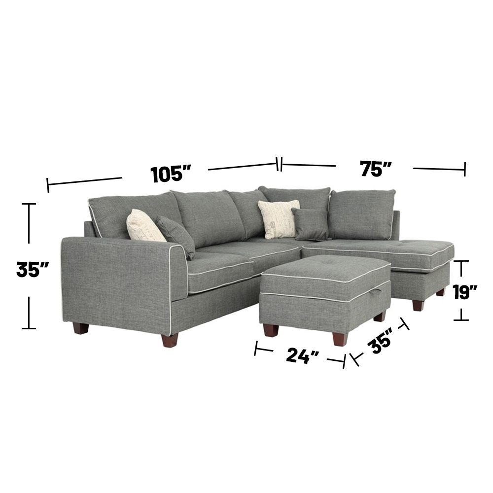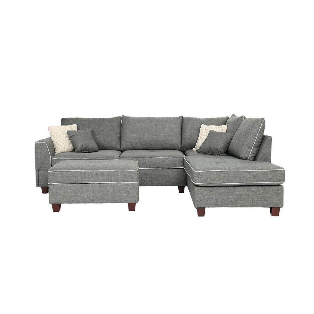 Reversible Dorris Fabric Sectional Sofa with Storage Ottoman, Steel Grey