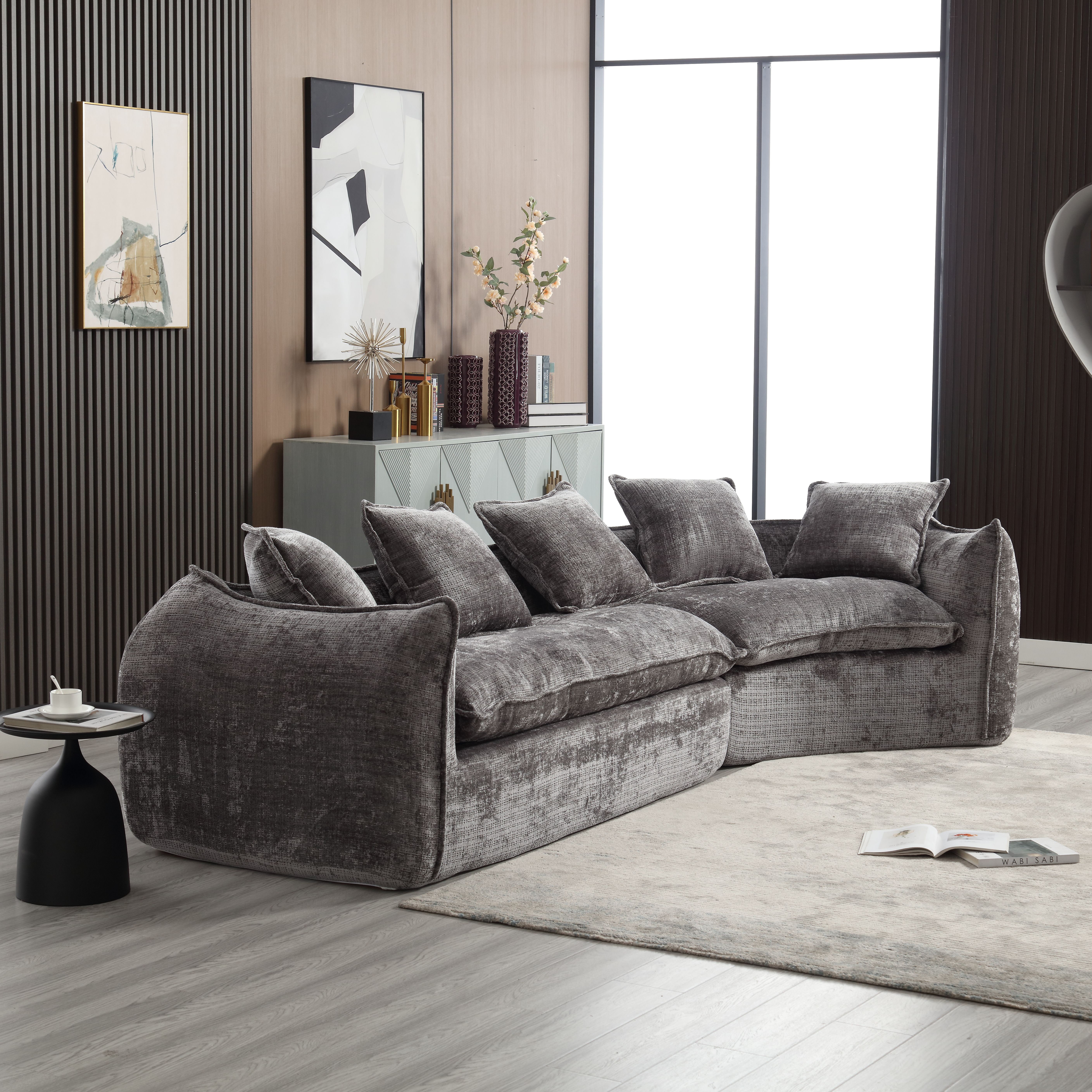 The sleek look is complemented by sofa colors for a sophisticated modern style and a warm, comfortable atmosphere, making this sectional sofa beautiful and comfortable. It's an ideal couch for your home like the living room, apartment, or reception room to create a comfy and private corner for social events or family time.Each seat is equipped with a matching pillow and the armrest of the cloud sofa is like a pillow, so whether you're sitting down and relaxing or lying down and taking a nap, this sofa will perfectly match your lumbar and neck, provide you with an unbelievably comfortable experienceUsing Chenille fabric, its texture is delicate and soft, the touch feels like soft silk, and the skin is excellent. Chenille fabrics also have excellent breathability and hygroscopic properties, which can provide you with a comfortable feeling in different seasons.The interior of the sofa is filled with high-quality sponges, which have good resilience and support. Every time you sit or lie down, the sponge can quickly adapt to the curve of your body, providing even support for your body and effectively reducing body stress. Even if you sit on the sofa for a long time, you will not feel tired or uncomfortable.