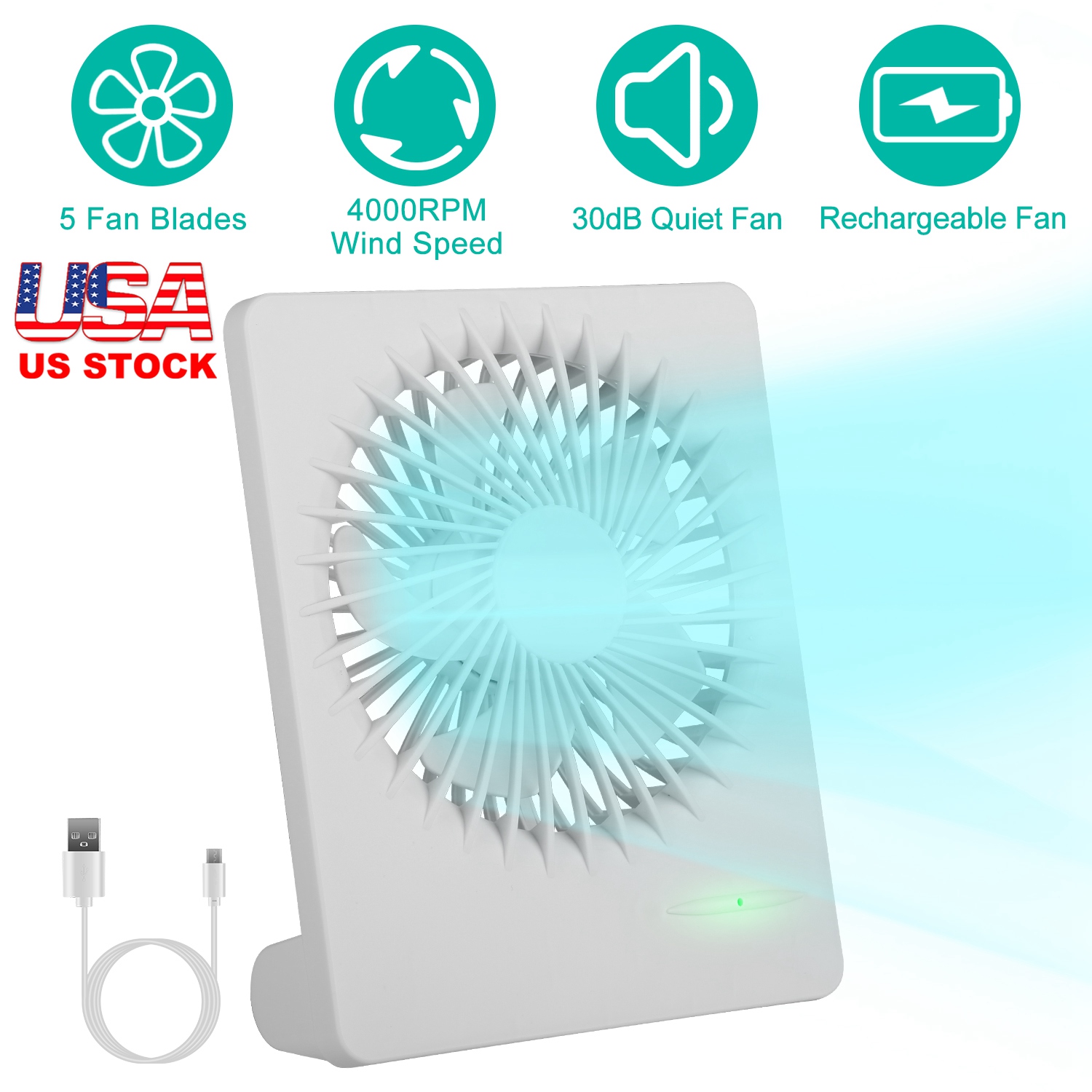 The hot summer is coming, our desk fan is the best cooling partner with you! 5 Fan blades cool you down quickly. Lightweight and compact, you can carry it from one room to another room. Rechargeable and portable fan brings you much convenience when travel. Support multiple power supply, the USB fan is compatible with computers, laptops, car charger etc.. Stably rest on the table and low noise, our fan won’t disturb you. Perfect summer cooling gift for you, your friends or family!