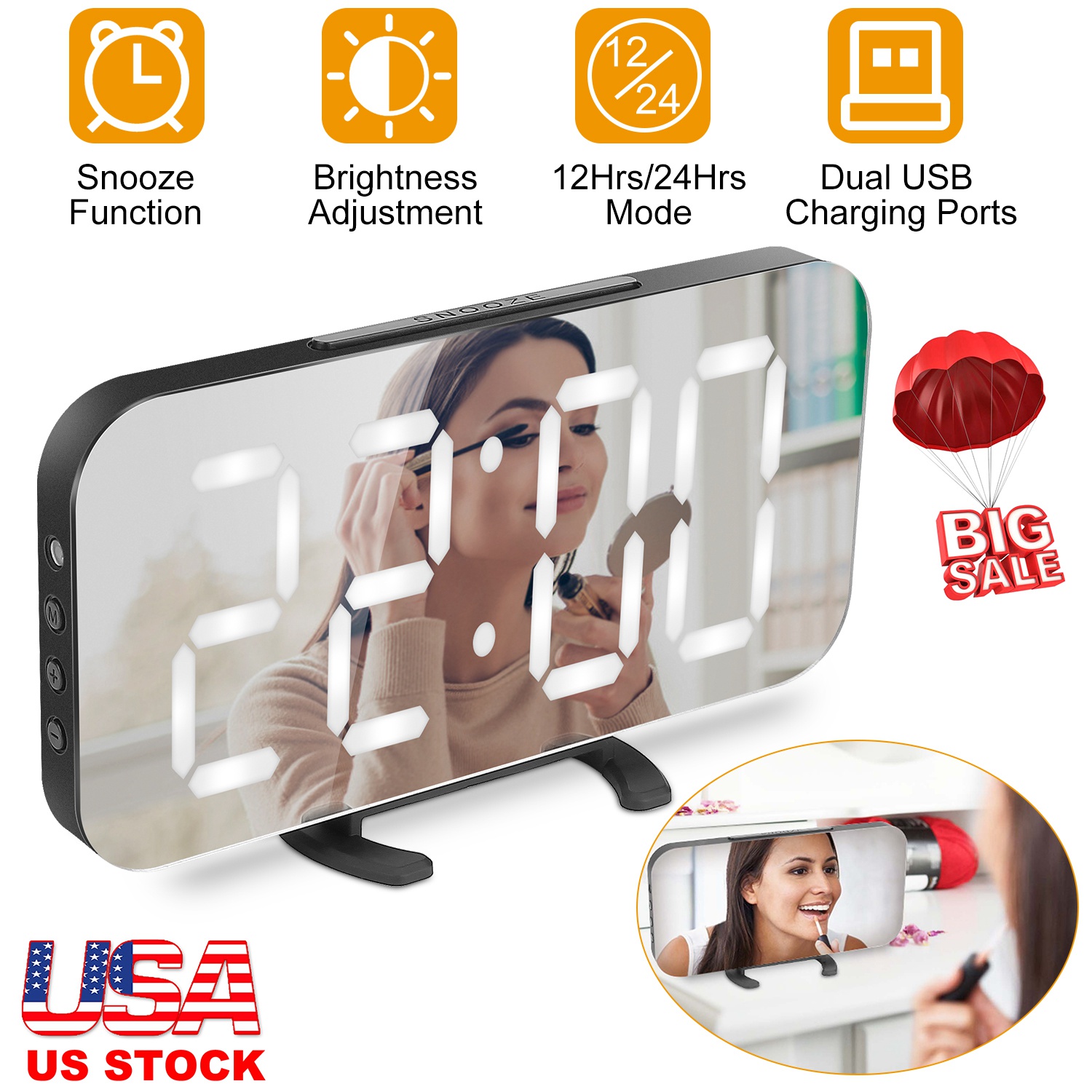 Home > Mirror LED Alarm Clock Electronic Snooze Night Light Alarm Clock w/ Dimming Mode 3 Level Brightness Dual USB Ports Modern Decoration For Home Bedroom